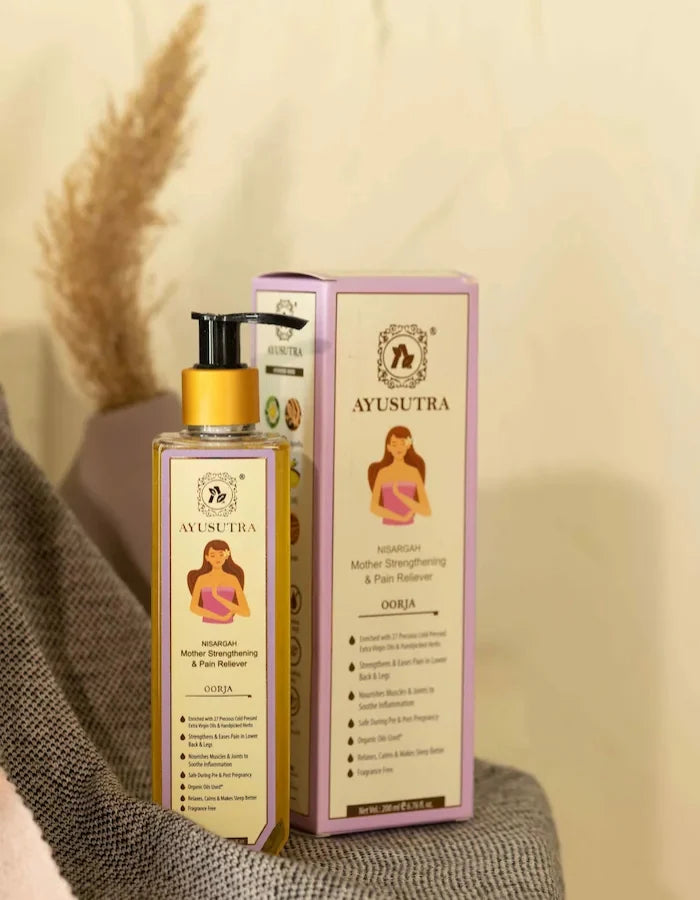Formulated with Ashwagandha, Bala, Haldi, Shatavari, A2 Ghee, and cold-pressed virgin oils—each ingredient is carefully chosen to ease discomfort, boost energy, and restore balance during and after pregnancy.